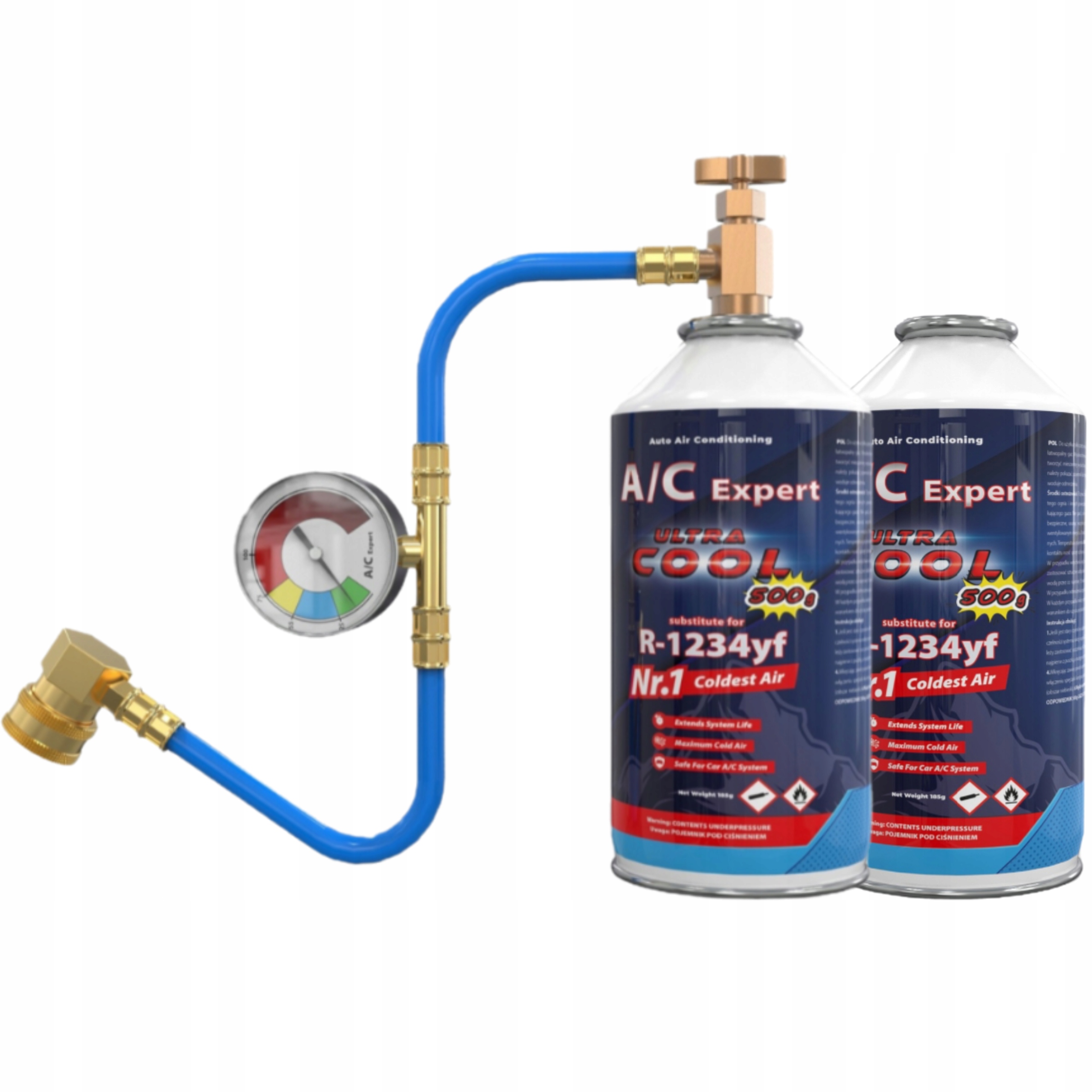 Żeby czynnik z puszki mógł zostać zassany koniecznie należy podłączyć zestaw po stronnie ssącej układu klimatyzacji. W układzie występują dwa porty serwisowe ssący i tłoczny. Przewód A/C Expert został tak opracowany aby jego podłączenie pasowało jedynie pod stronne ssawną zatem nie musimy się obawiać że podłączymy zestaw po stronie tłoczącej i narazimy się na sytuację gdzie czynnik z układu klimatyzacji będzie tłoczony do puszki.
