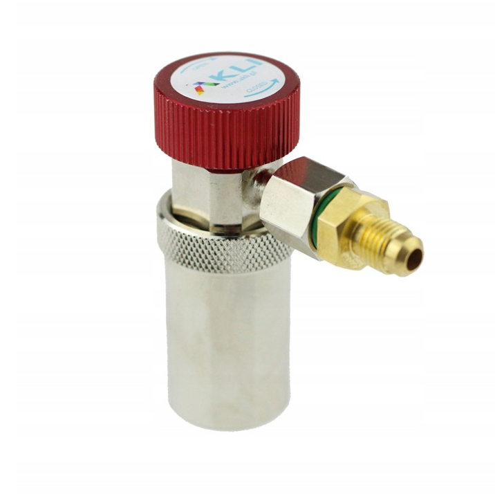 Dodatkowo w zestawie redukcja dzięki której możemy podpiąć się pod każdą stacje klimatyzacji na czynnik R-134a zarówno pod gwint 1/4SAE jak i M14x1,5.